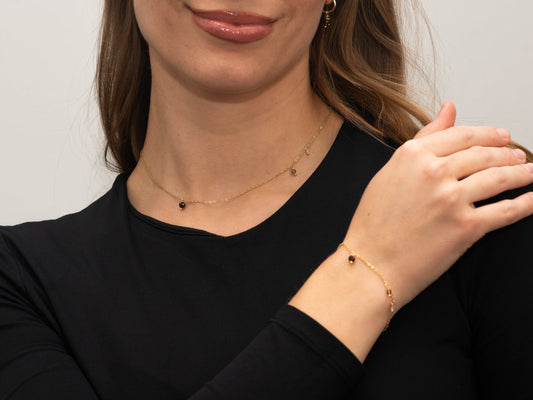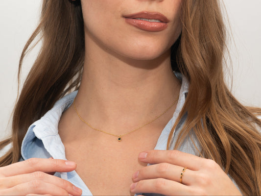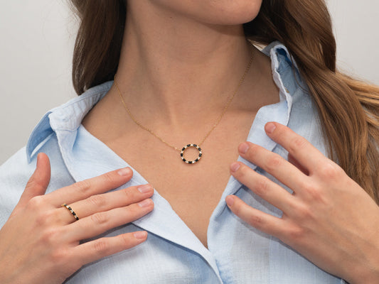 Silber-Halskette, vergoldet, mit schwarzem Zirkonia
