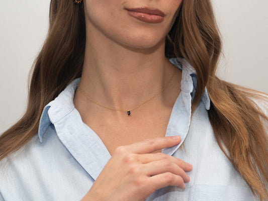 Silber-Halskette mit dunkelblauem Zirkonia, vergoldet