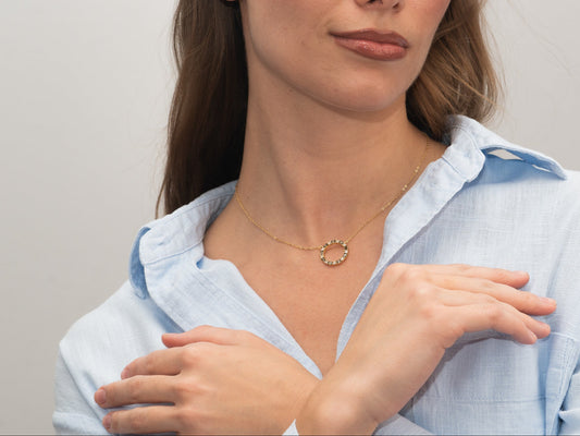 Silber-Halskette mit olivgrünem Zirkonia - vergoldet