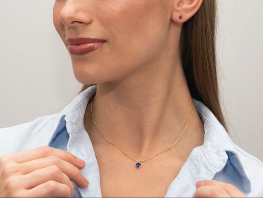 Silber-Halskette mit saphirblauem Zirkonia - vergoldet