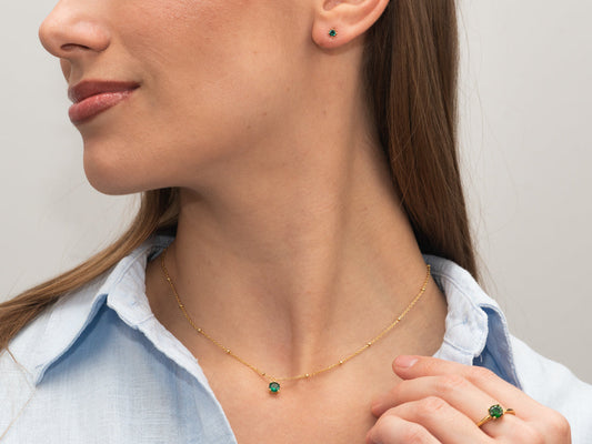 Silber-Halskette mit smaragdgrünem Zirkonia - vergoldet